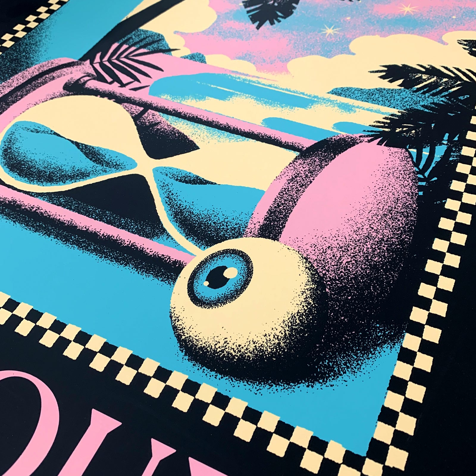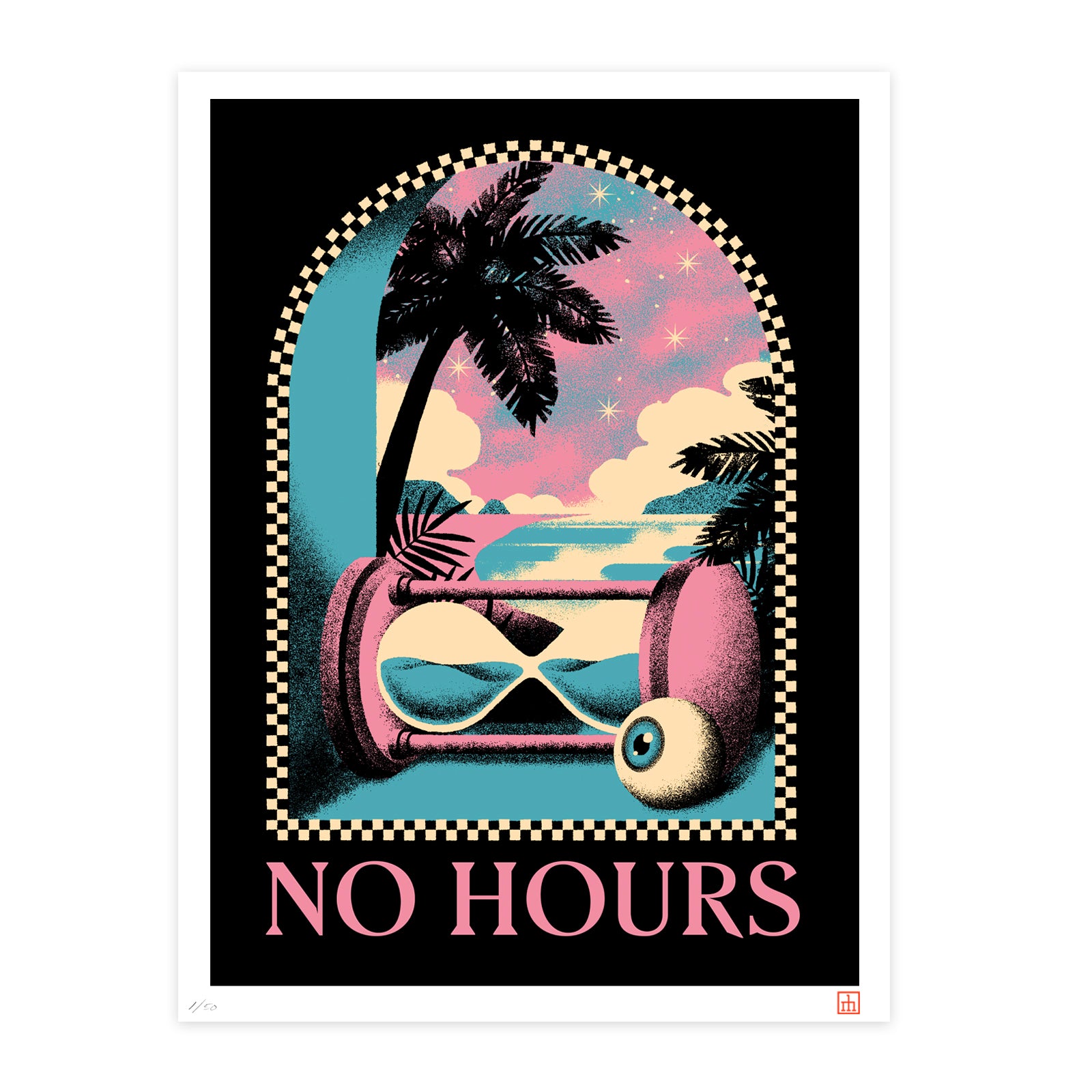 Take a ride on the wild side with NoHours' Hourglass Print. Illustrated by renowned professional artist Max Loeffler, this print embodies the rebellious spirit and edgy aesthetics. With its vibrant colors and intricate design, it's the perfect piece to add some character to your space.
