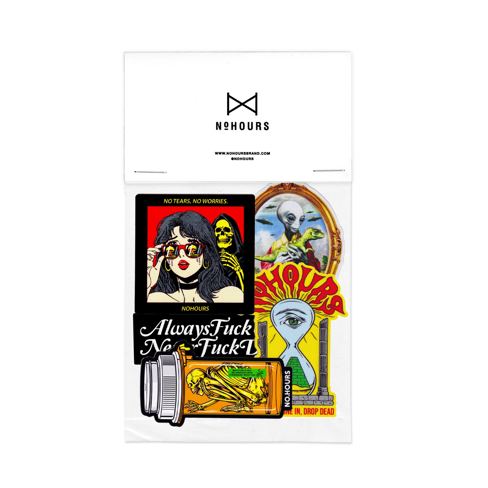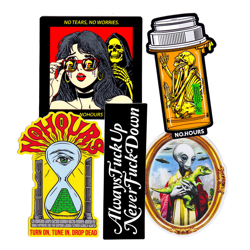 Adorn all your stuff and things with NoHours' Sticker Pack 24. These high-quality dye-cut stickers are designed to pop, resist fading, and stick around for the ride.