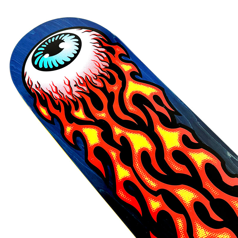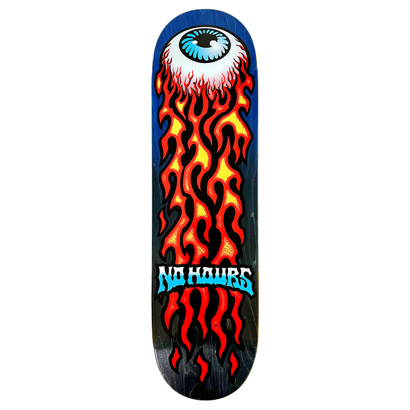 - Vivid flaming eyeball design on a blue to black gradient wood stain