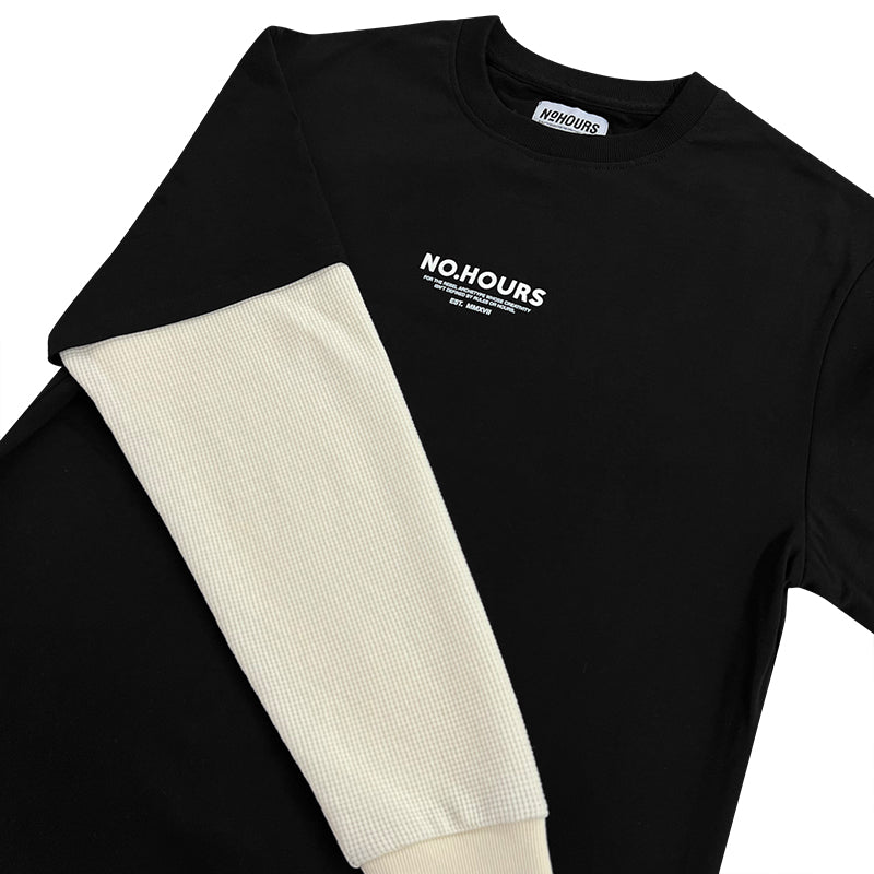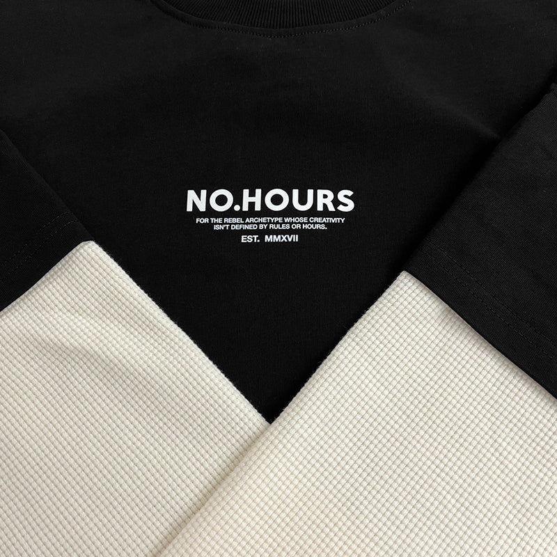 NoHours' Warm Up Long Sleeve is the perfect blend of comfort and raw street style. Crafted with a 100% cotton tee and heavy weight thermal sleeves, this is more than just apparel - it's your second skin.