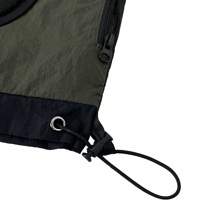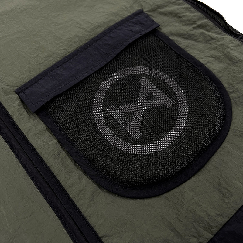 - Equipped with 2 side pockets with zippers and one front mesh cargo pocket for secure storage