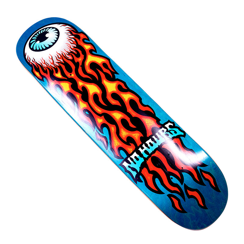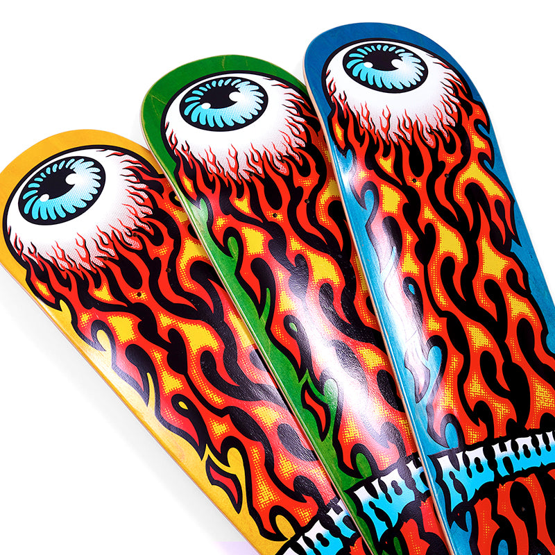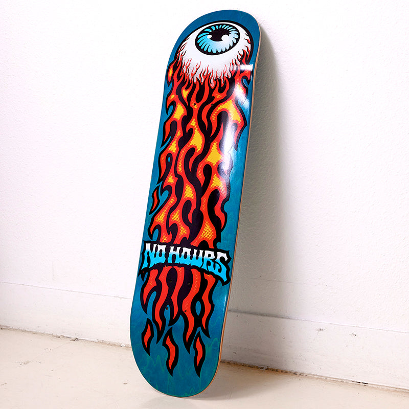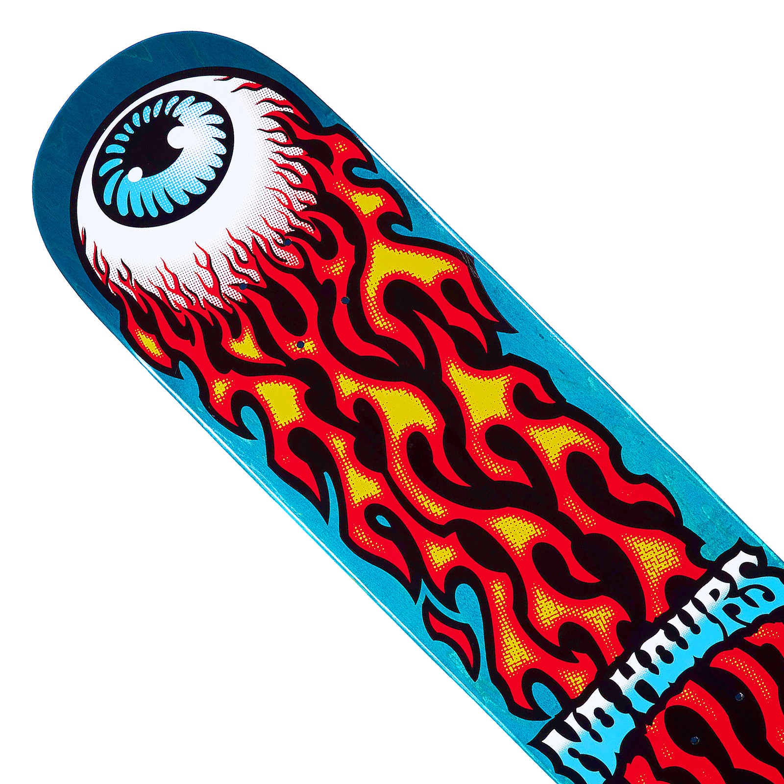 Set your skating style ablaze with NoHours' Eye Burn Deck. Inspired by the counter-culture and skateboard lifestyle, this deck showcases a unique eye design that's sure to catch attention at the skatepark. Featuring a striking blue wood stain and bold graphics, it's not just a skateboard deck - it's a statement.